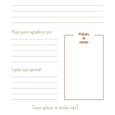 Um espaço especial para crianças escreverem suas orações, pensamentos e agradecimentos a Deus. Incentiva a fé, a reflexão e o hábito diário da oração de forma divertida e criativa.